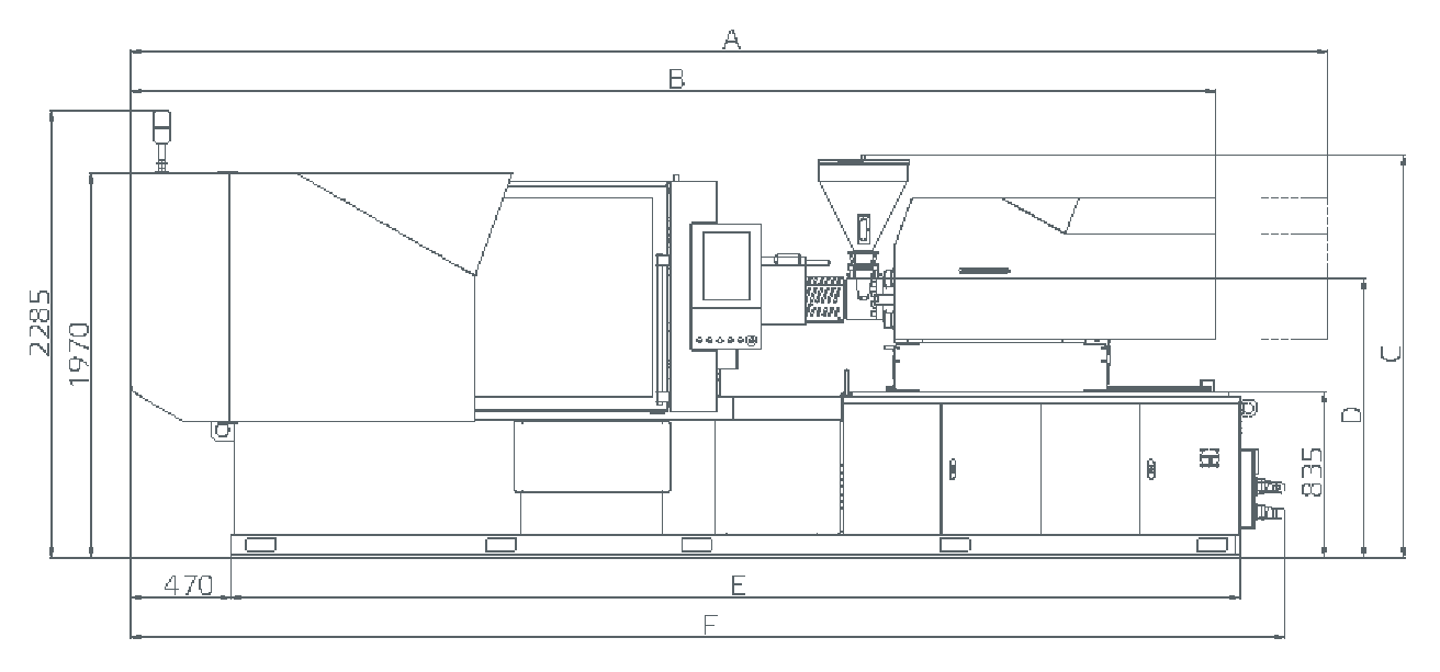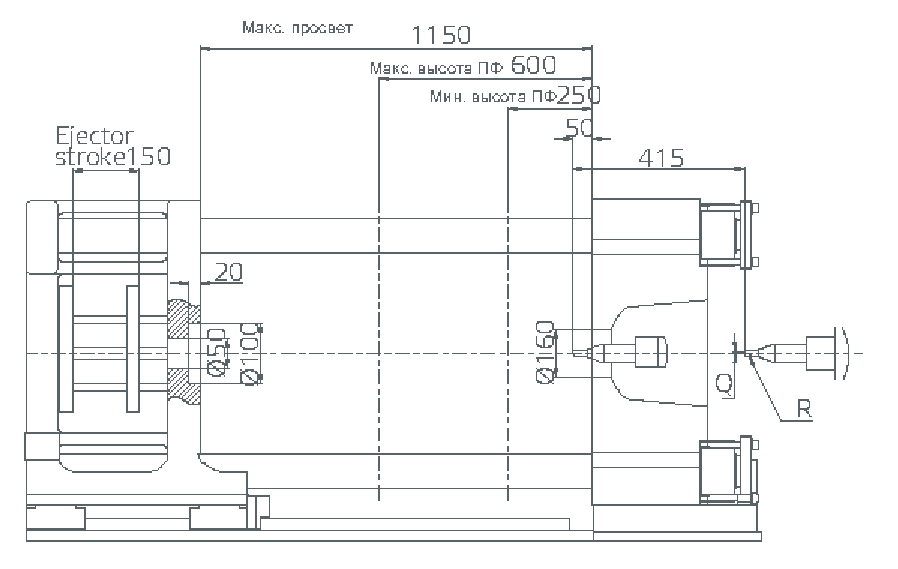 Установочные размеры на передней неподвижной плите