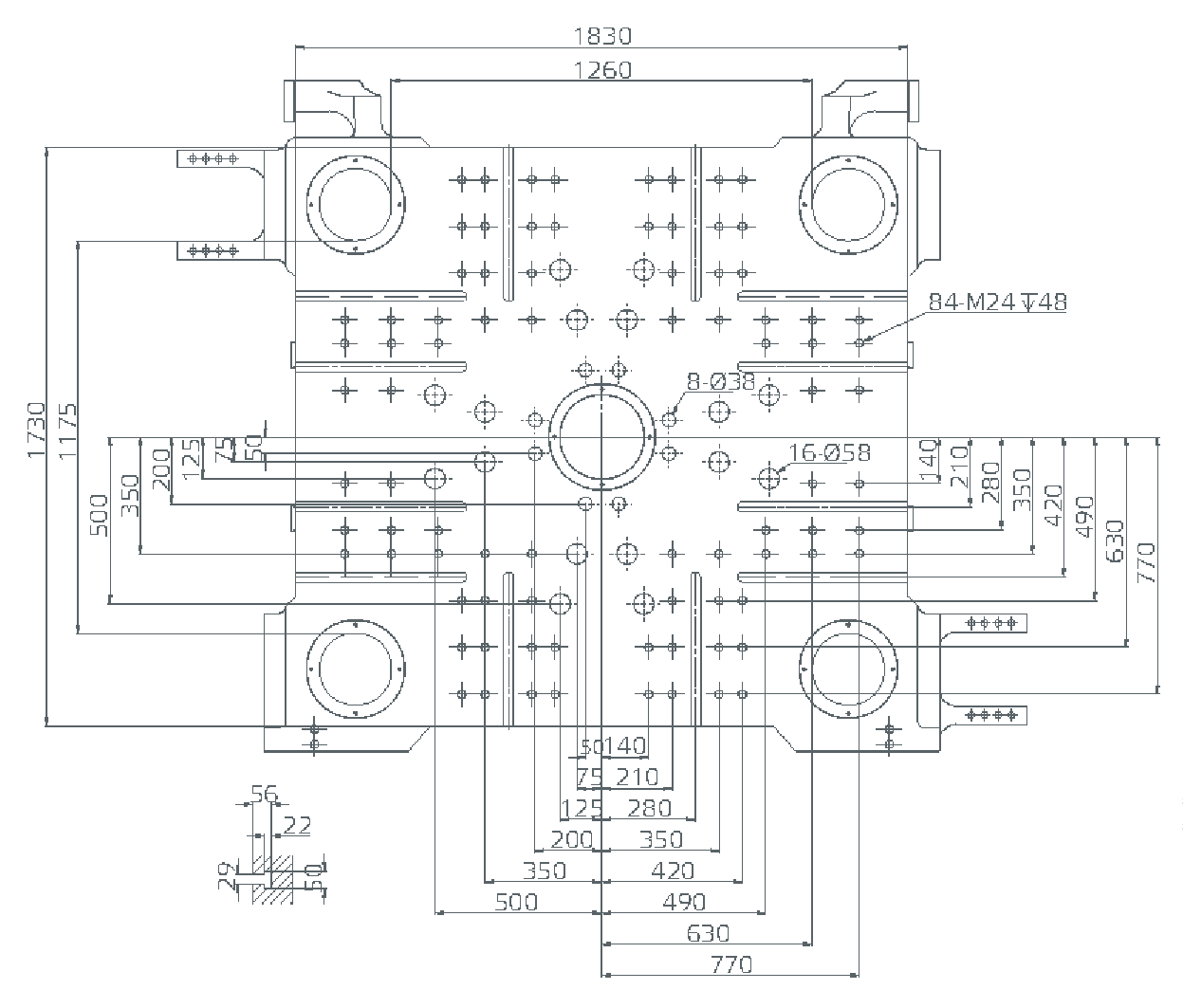 Размеры подвижной плиты и сетки отверстий